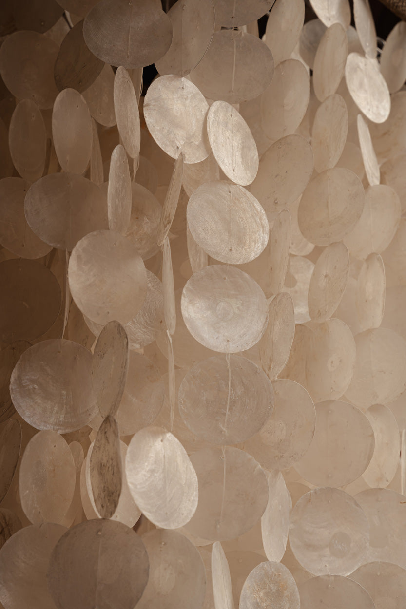 De Moonlit Whispers hanglamp roept de sereniteit van de zee op. Witte capizschelpen verspreiden licht door gelaagde, doorschijnende schijven en... Lees meer