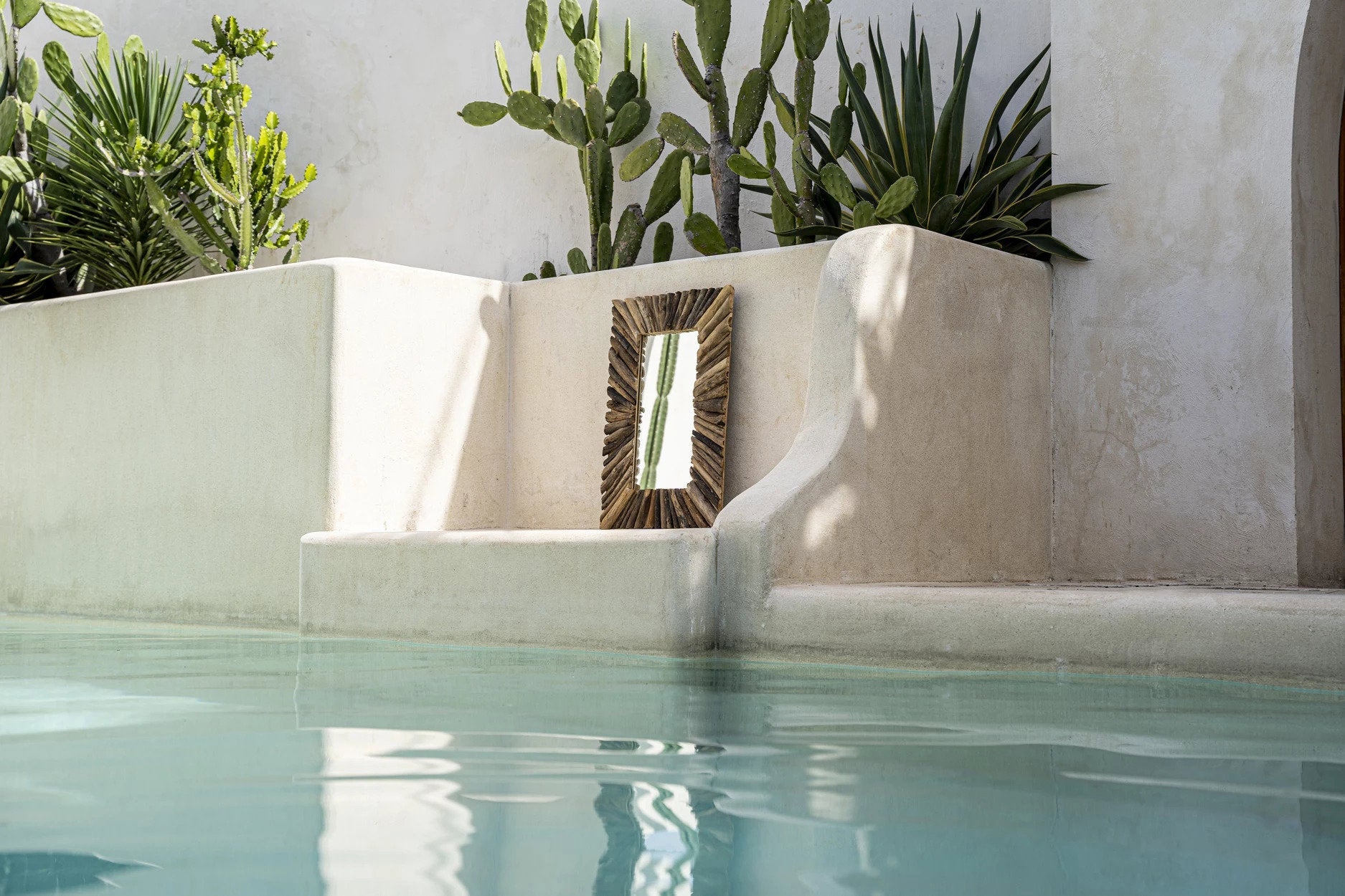 Deze elegante spiegel is met zorg vervaardigd uit drijfhoutstukken die rondom het rechthoekige spiegelglas zijn geplaatst. Elk exemplaar is uniek.... Lees meer