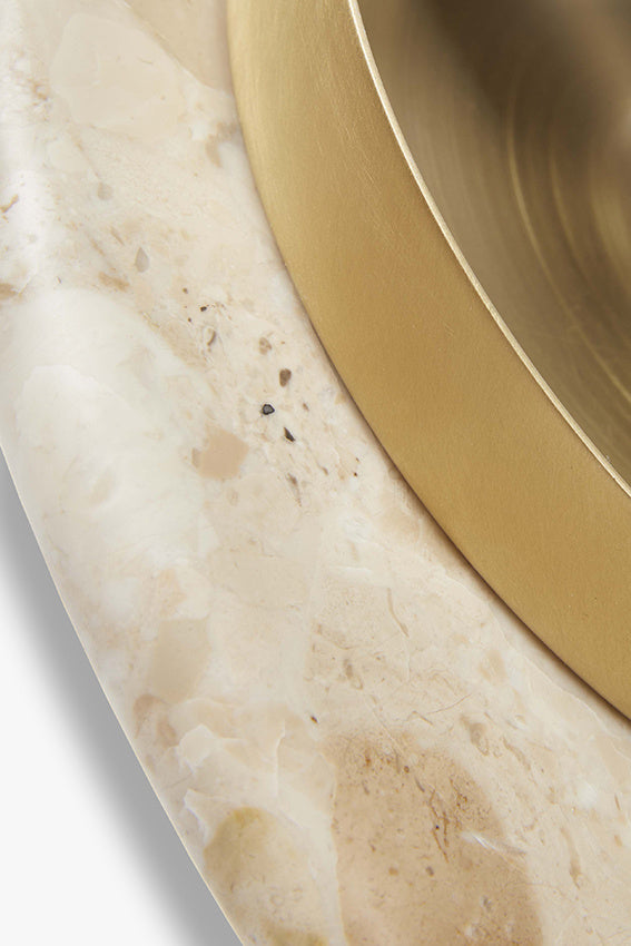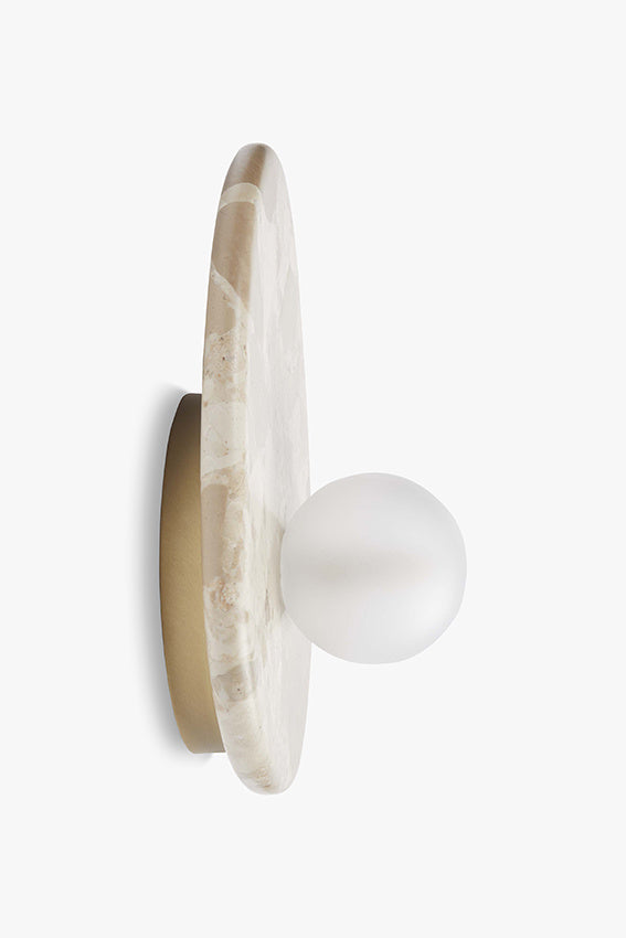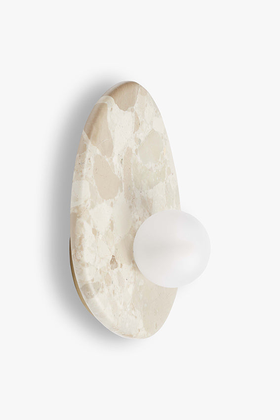 Nina wandlamp: verfijnd en elegant, vervaardigd in Portugal uit uniek Kunis Brescia-marmer met natuurlijke zandtinten; elk exemplaar is onderscheidend. Handgewerkt... Lees meer