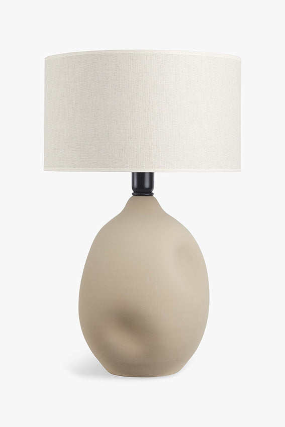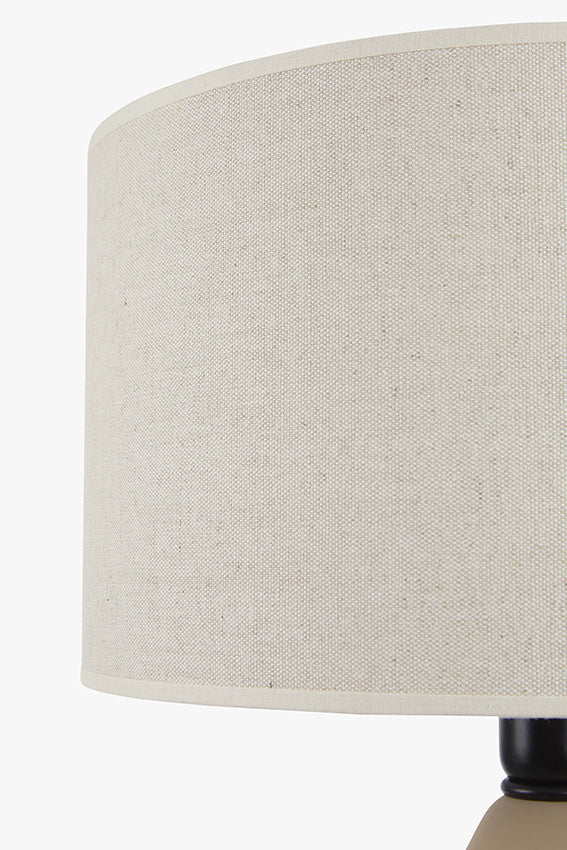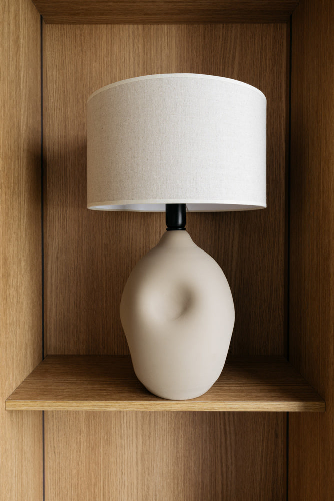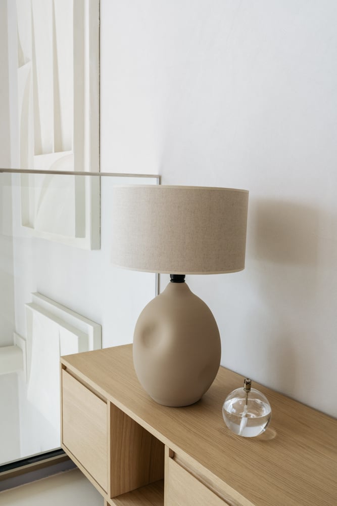 Handgemaakte aardewerken tafellamp Liz zand met linnen kap