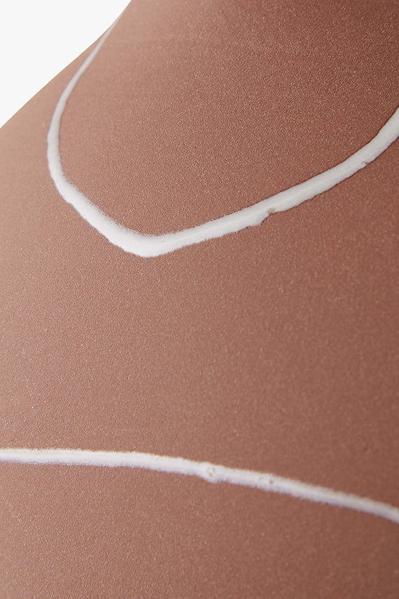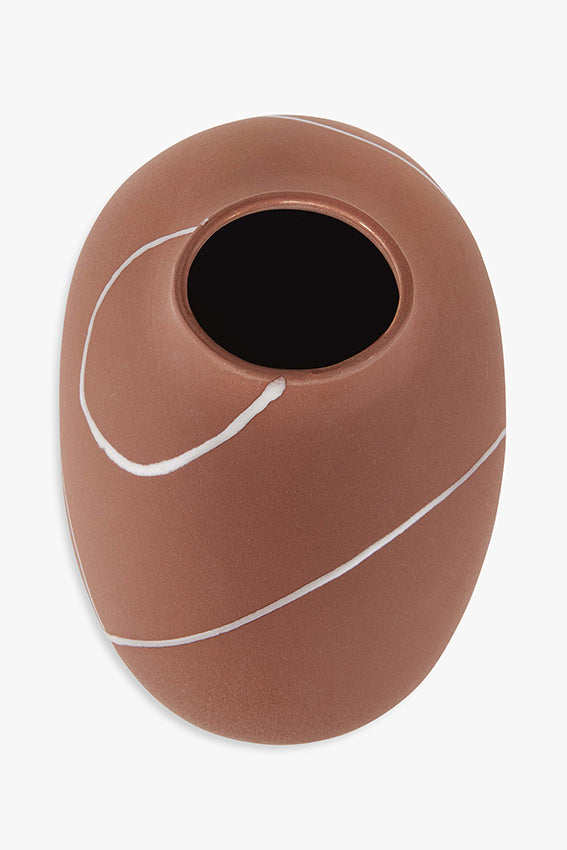 Handgemaakte aardewerken vaas Iris, vervaardigd in een kleinschalig keramiekatelier in Portugal. Matte terracotta, met de hand beschilderd met sierlijke ecru-lijnen.... Lees meer