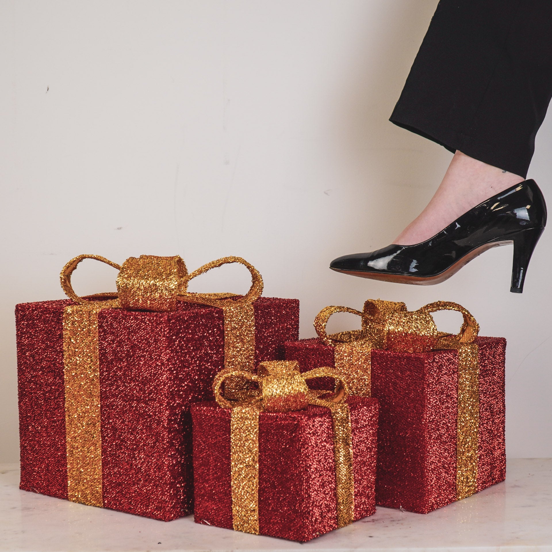 De set bestaat uit 3 verschillende maten (15 / 20 / 25 cm), waardoor ze samen een speels en feestelijk geheel vormen. Perfect om direct onder je kerstboom te zetten en instant holiday vibes te creëren. Als dit geen kerstgevoel geeft, weten wij het ook niet meer!