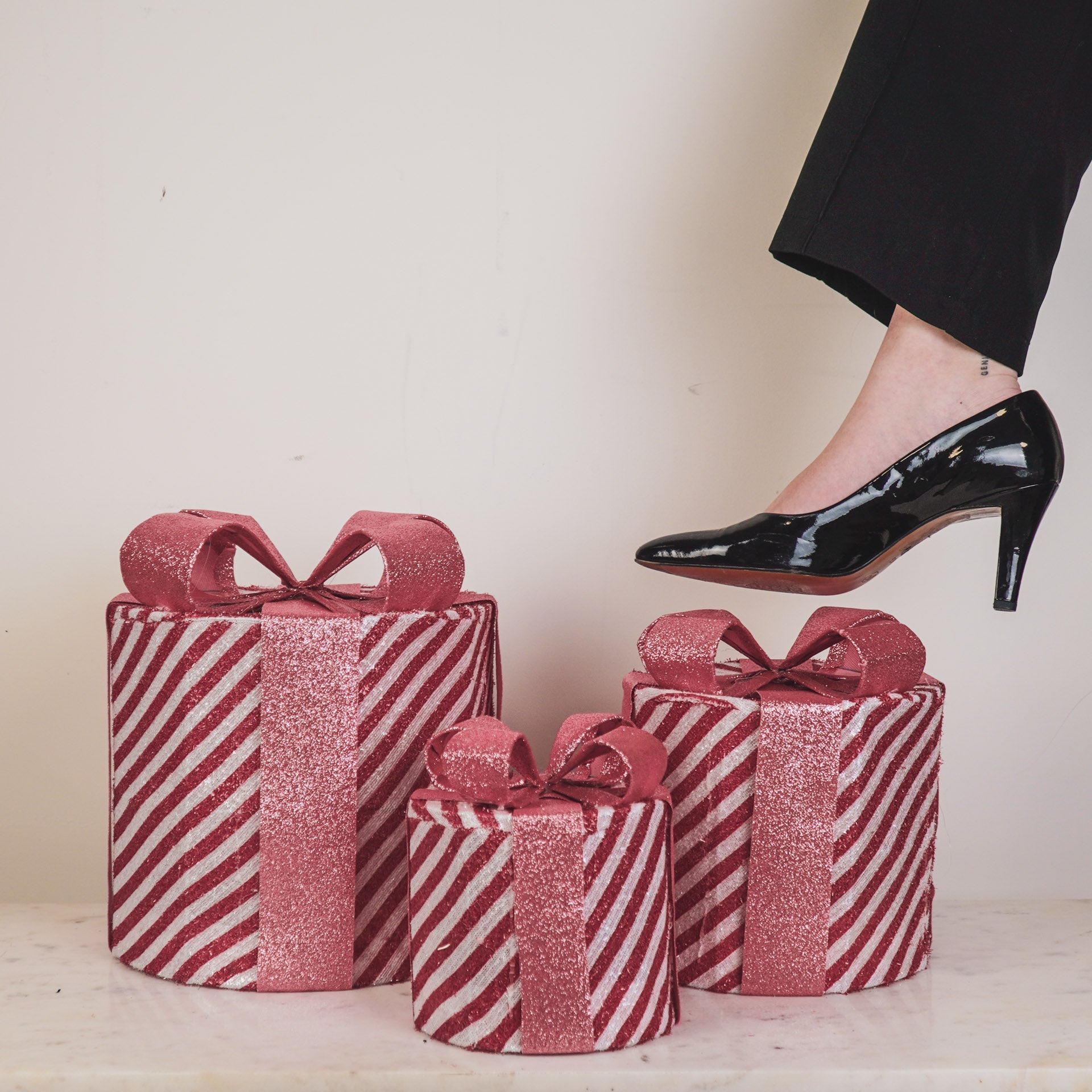 De set bestaat uit 3 verschillende maten (15 / 20 / 25 cm), waardoor ze samen een speels en feestelijk geheel vormen. Perfect om direct onder je kerstboom te zetten en instant holiday vibes te creëren. Als dit geen kerstgevoel geeft, weten wij het ook niet meer!