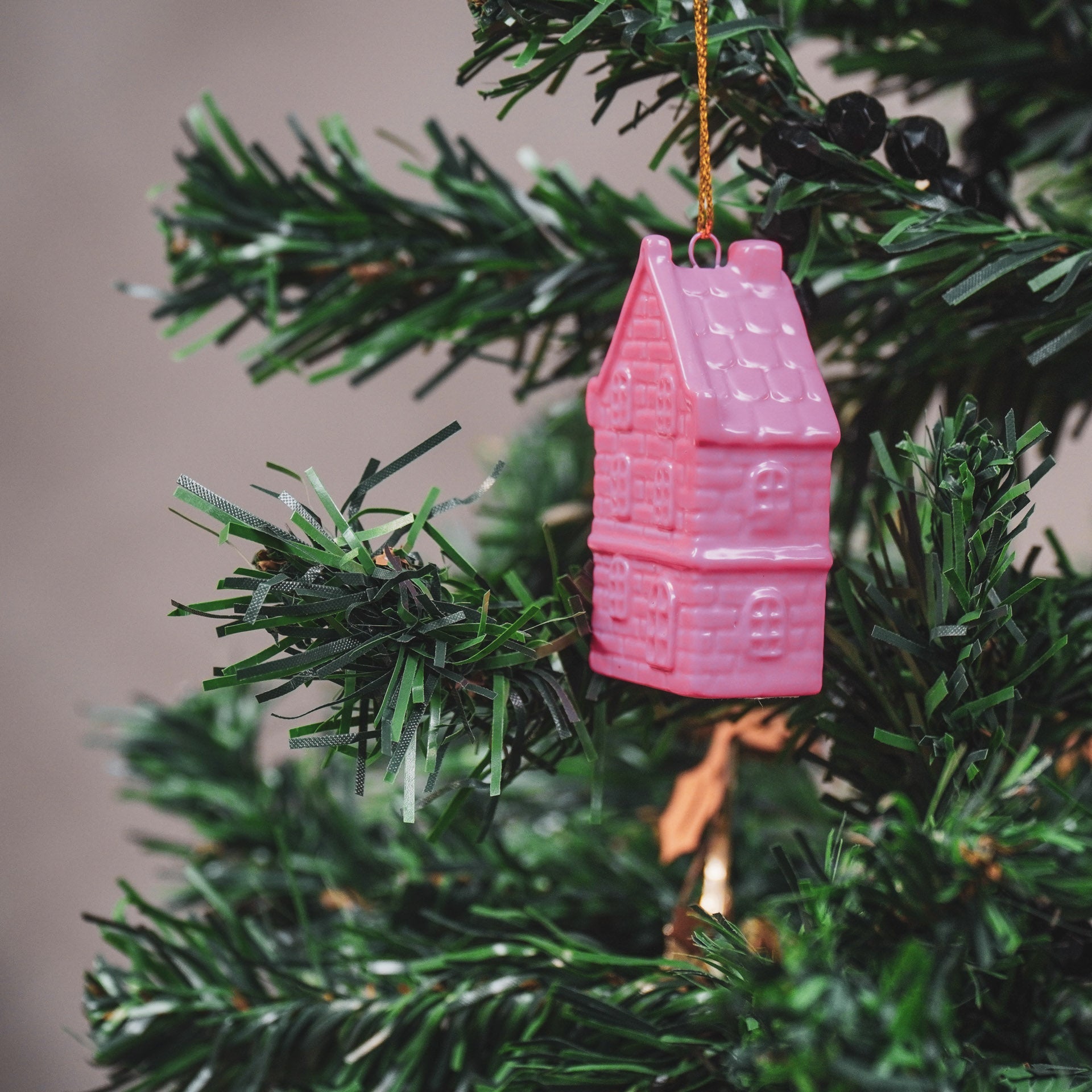 Kersthanger - Huis - Keramiek - Neon Roze - 3,5x2x6,5cm