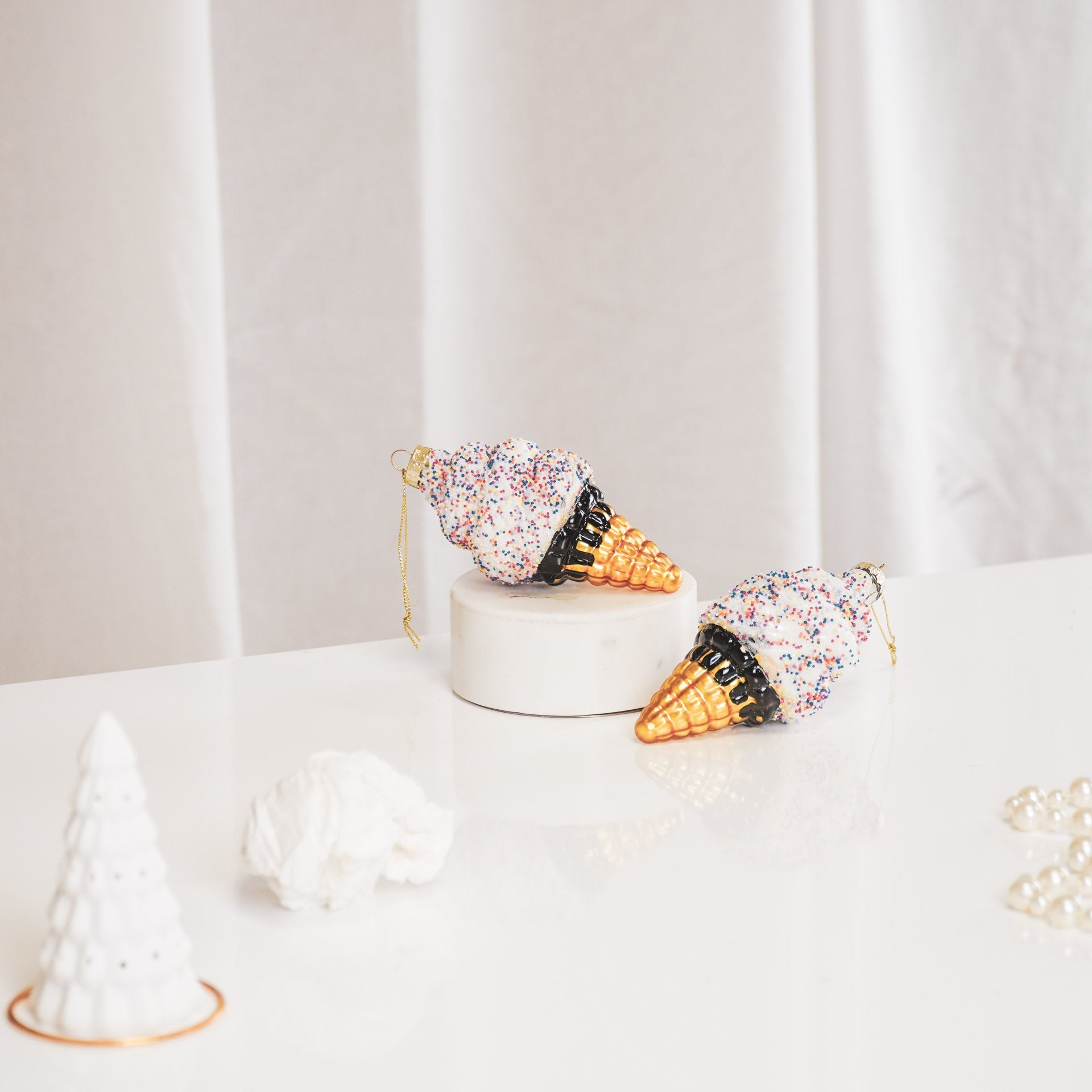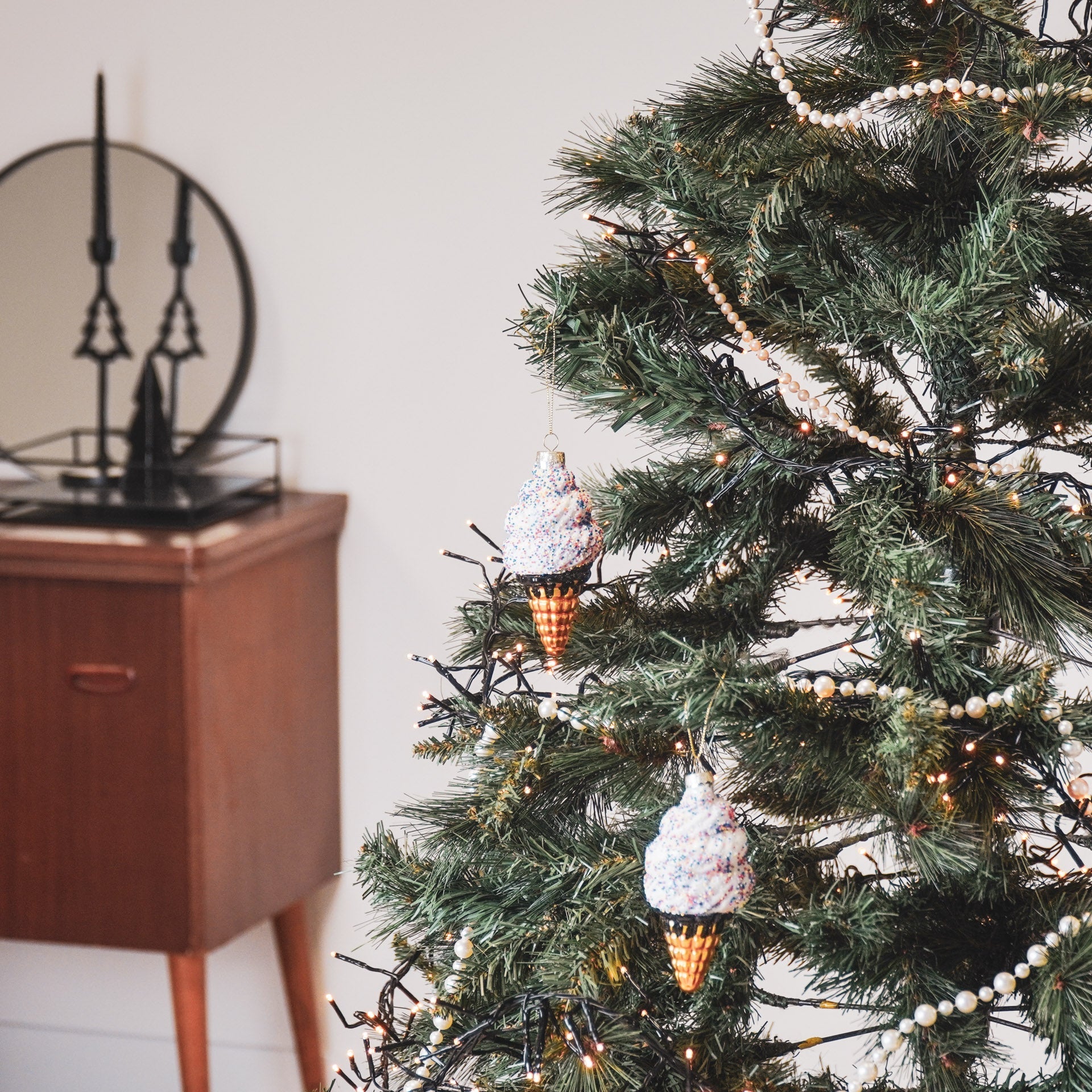 IJSJES KERSTBALLEN - Jouw kerstboom is niet compleet zonder grappige kerstdecoratie. Deze glazen ijshoorntjes kerstbal maakt jouw kerstboom leuker. Je... Lees meer