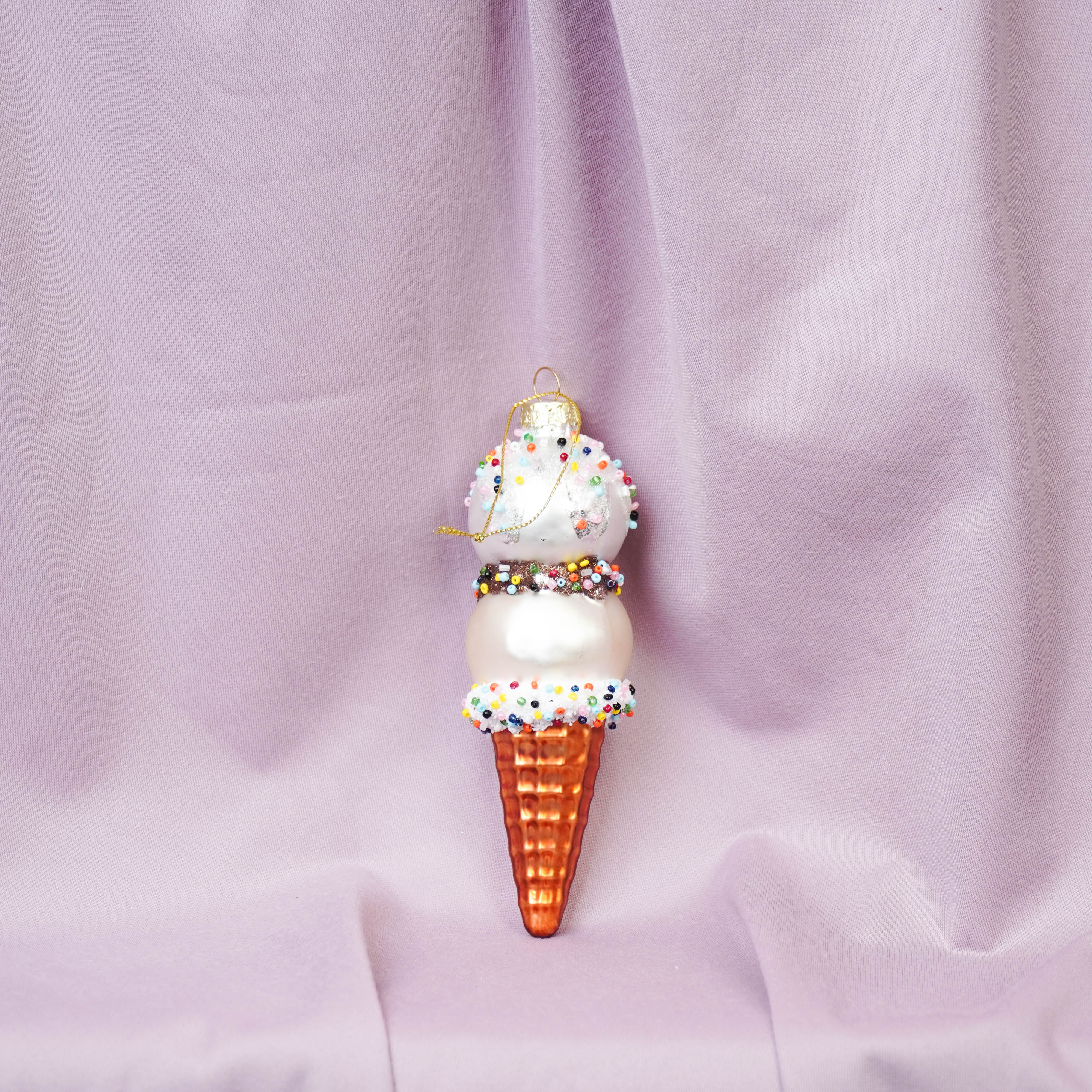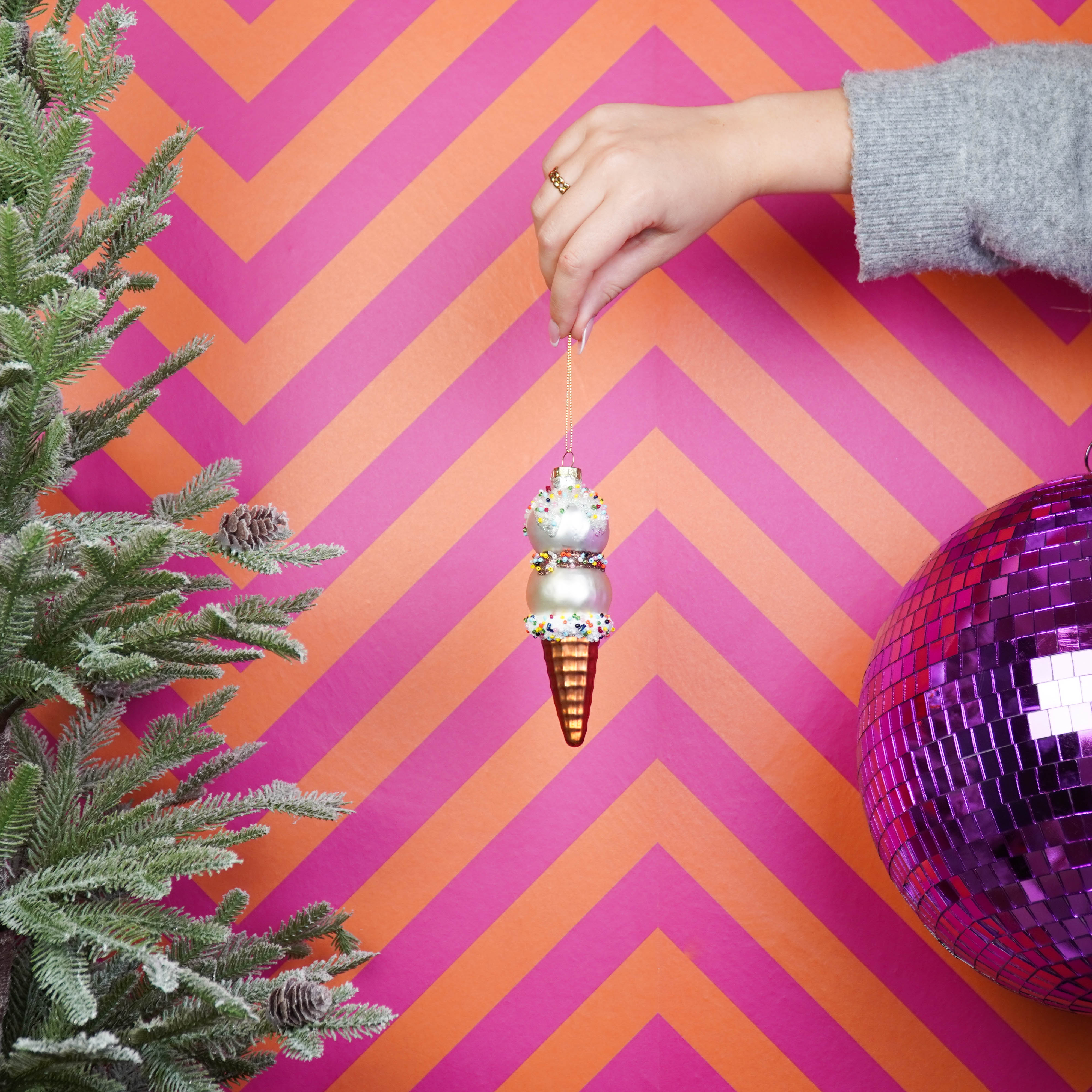 Kerstversiering - Kersthanger - Ijsje - Glas - Roze/Wit - 5x14cm