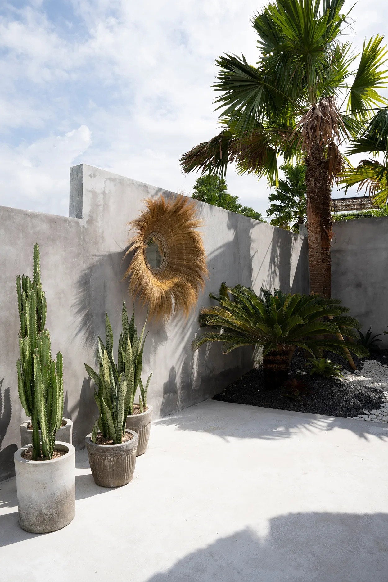 Handgemaakte spiegel met ingelegd glas, wat een spectaculaire diepte creëert. Handgemaakt van gedroogd gras, de natuurlijke tint geeft een tijdloze... Lees meer
