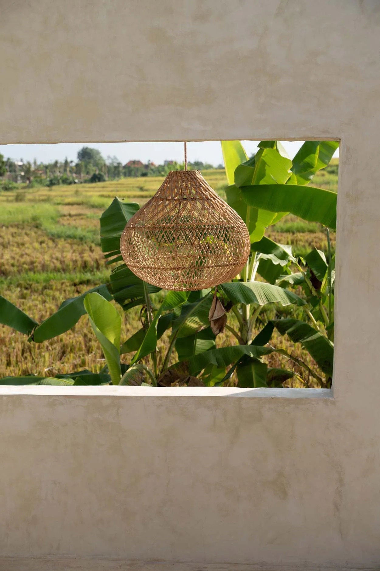 Hangende lampenkap van handgemaakt rotan met luchtig vlechtwerk en natuurlijke kleur. Verspreidt een zacht licht en een organische elegantie, geschikt... Lees meer
