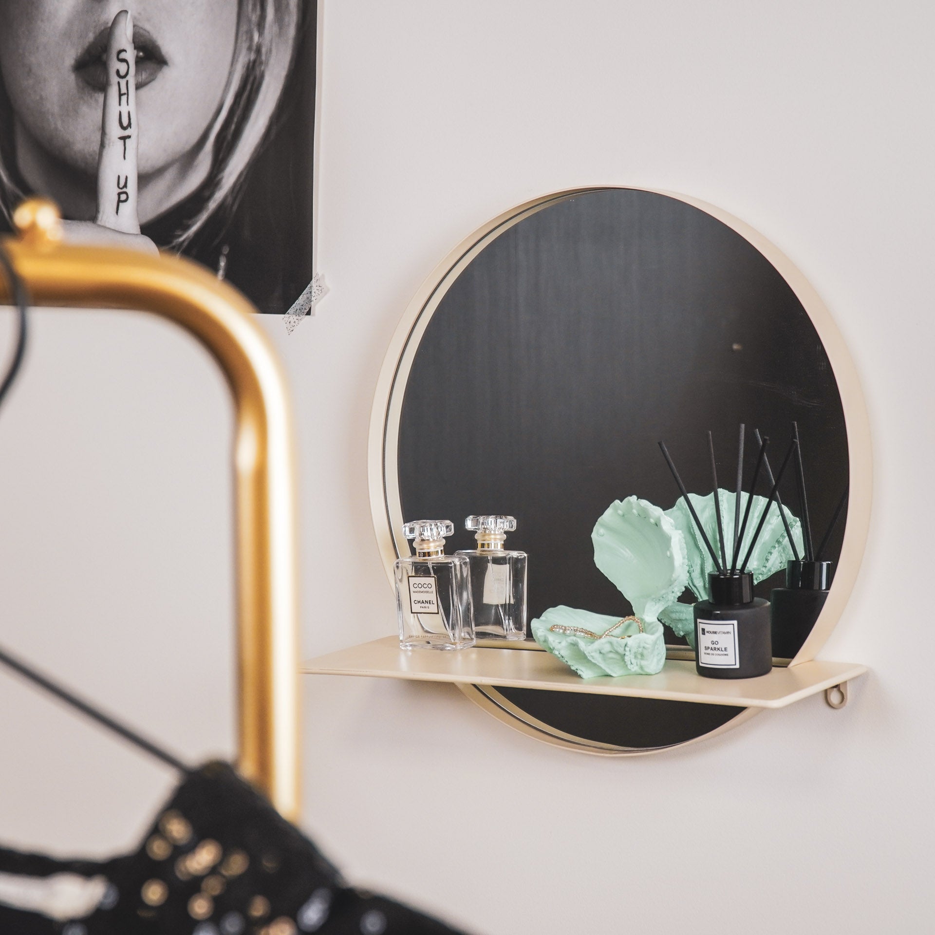 Ronde Spiegel met Plank- Zand - Ø40cm