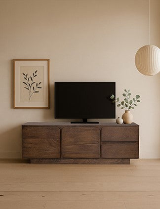 TV-dressoir 190 cm met 3 deuren en 2 lades, Mango Donker Malt