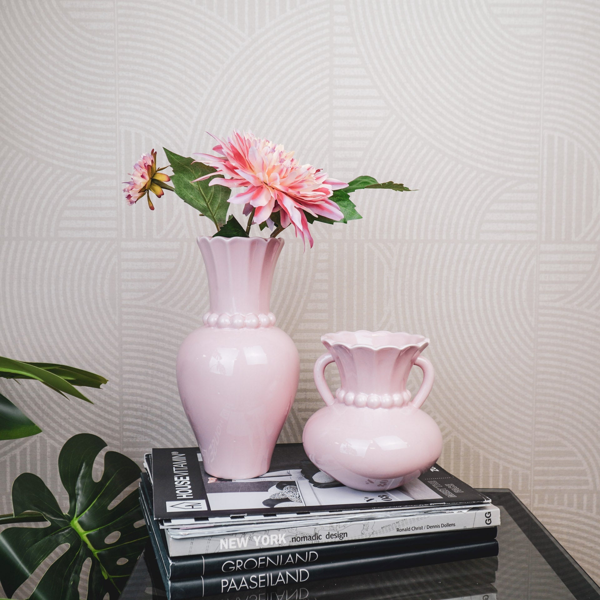 Vaas- Kruik Vaas met Parelhals- Dolomiet - Licht Roze- 12x12x24cm
