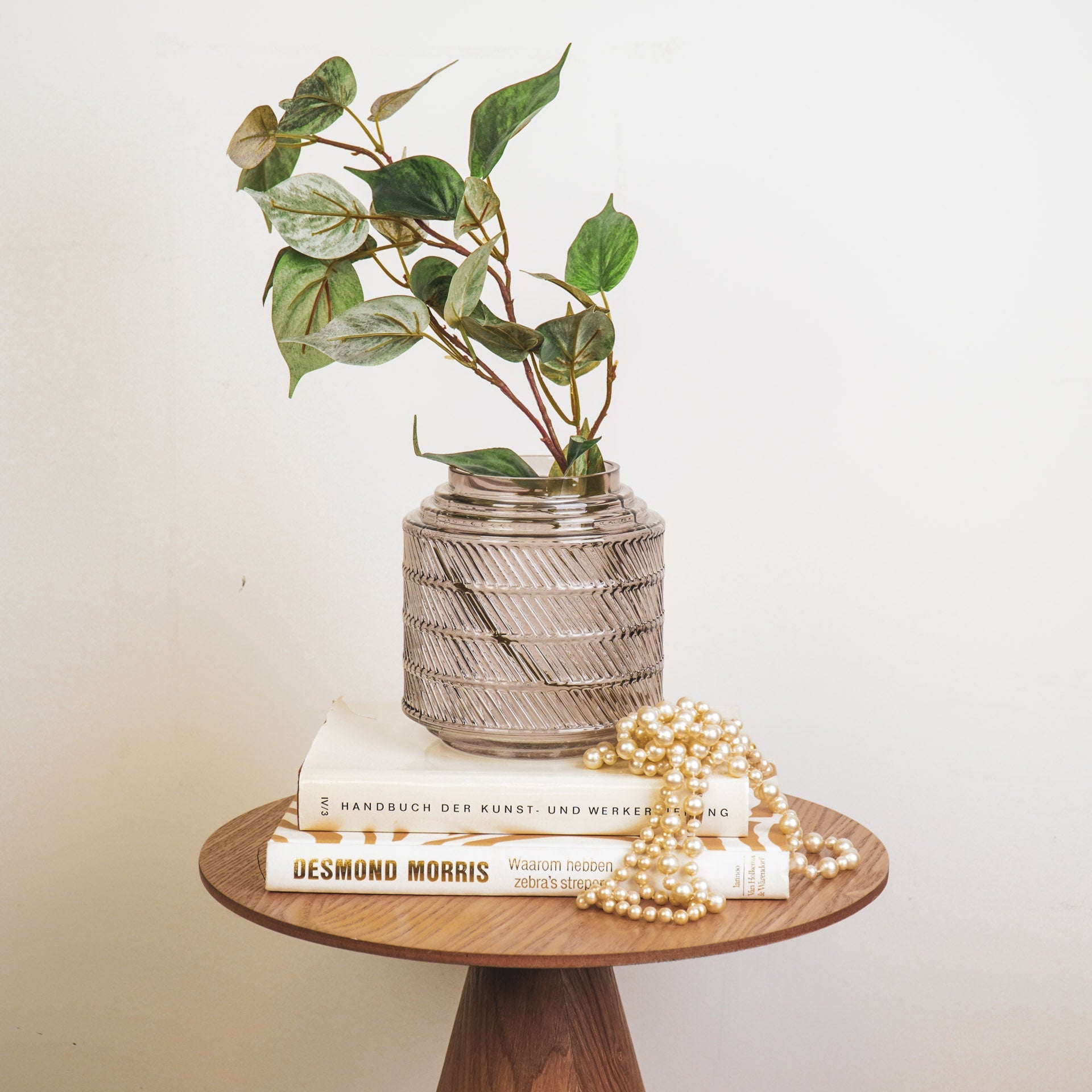 VAZEN HEB JE NOOIT GENOEG! Op zoek naar de perfecte bloemenvaas om je boeket tot leven te brengen? Deze prachtige smokey glazen vaas met reliëf van Housevitamin is precies wat je nodig hebt. Gemaakt van hoogwaardig glas en met een afmeting van 16x16 cm, is deze vaas een echte eyecatcher in jouw interieur.